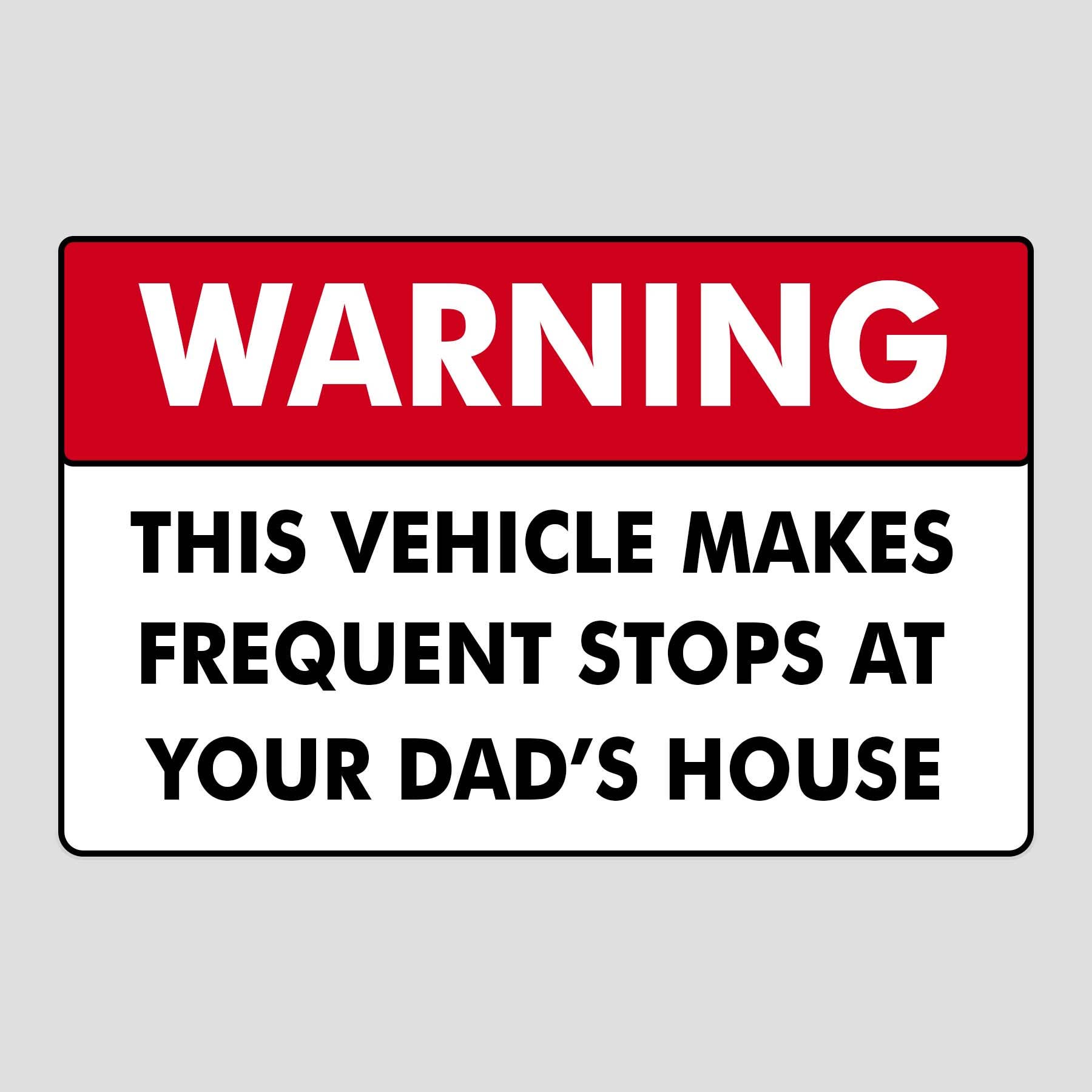 "Warning: This Vehicle Makes Frequent Stops at Your Dad's House" Car Sticker