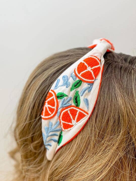 Orange you glad you saw this! This headband is the perfect mix of cute and comfy, featuring beaded oranges on soft fabric. Add some flair to any outfit, and show off your fun personality with this headband!
